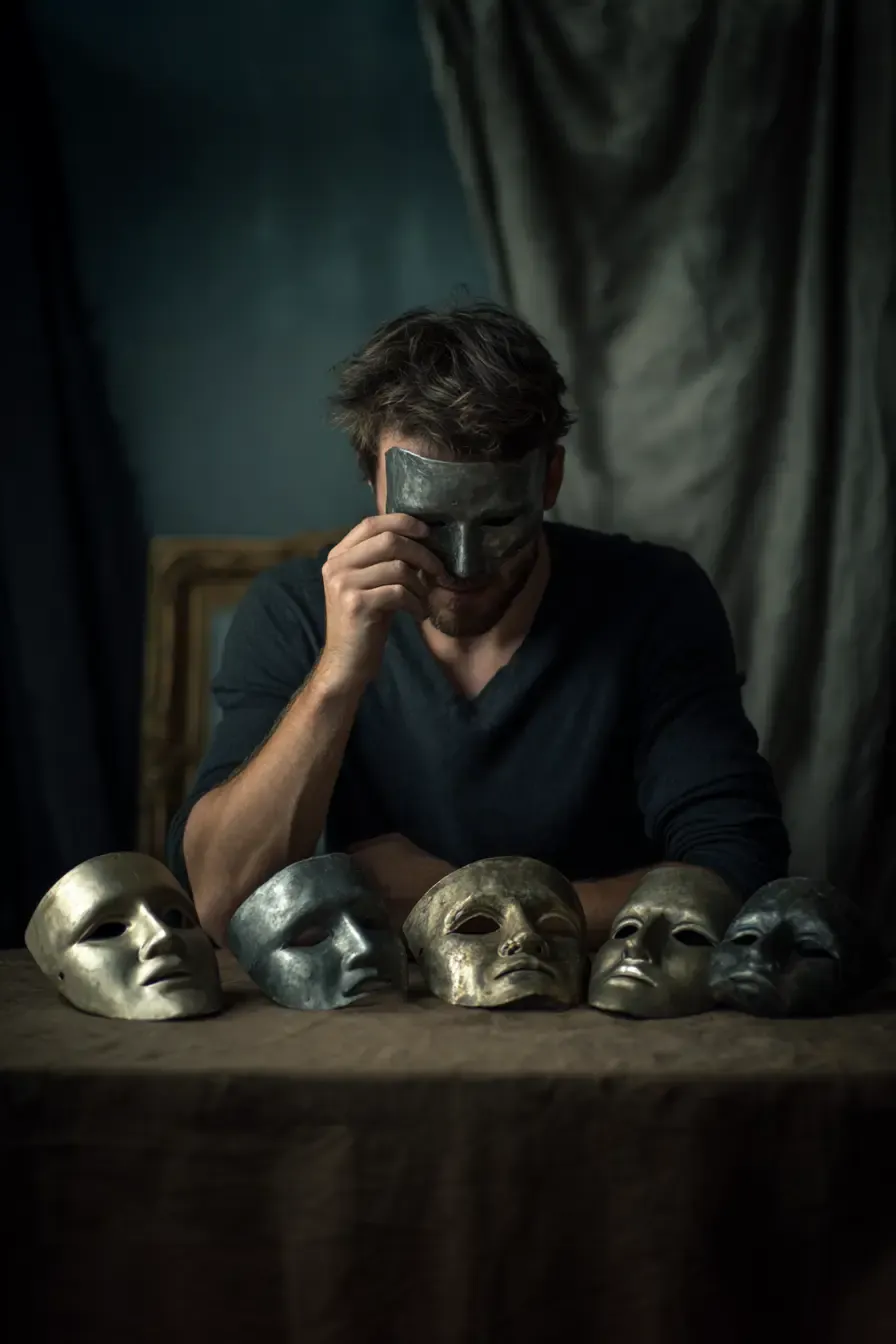 🎭 In de interactie met anderen ben je nooit helemaal je Zelf. Je draagt verschillende maskers bij verschillende mensen. Bij je vrienden ben je persoon A, bij je collega’s persoon B, bij je partner persoon C, en zo heb je nog een heel alfabet aan maskers verzameld. Best vermoeiend, toch?